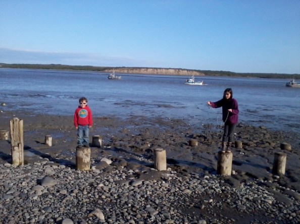 Some paths are always good to return to and now that my kids are getting older I am able to share more pathway with them. Tonight we walked long and far in the light wind and sun along the Naknek River beach. First hitting the beach above the city dock at the old Red Salmon Cannery ways where tenders are still put in and pulled out at the beginning and end of the season. Some old tender ruins are sitting to the side of the track never to be put in the water again. Continuing upstream we then reached the old Red Salmon Cannery. The camp, established in 1901, still pulses with activity every summer and seems like a town unto itself. Walking across the dock and over to the other side brought us to some cut off pilings where the kids became beach statues. When it was time to turn around we retraced our steps until we passed city dock and hit the beach again. By then the littlest was getting tired, but the promise of coffee time at the AGS camp urged him on and we made it just in time for “the colorful waters,” that most of us would recognize as fountain juice, and hot cocoa. The walk home from there is one that all of us know well. It was one of the first that I took with my parents when I was small and hadn’t yet expanded my realm.