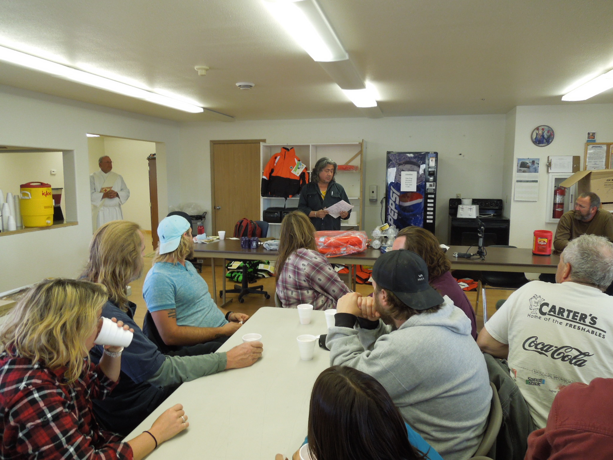 For good measure a safety representative followed the symbolic and spiritual with tangible measures that we as fishermen can take to protect ourselves from the hazards of the sea. The raffling of Personal Floatation Devices (PFDs) was a fitting follow-up. It was then time for attendees to enjoy the potluck feast and bring together the proceedings of the afternoon amongst each other. Sharing with the community of Naknek in this way as we embark upon another season is a blessing unto itself.