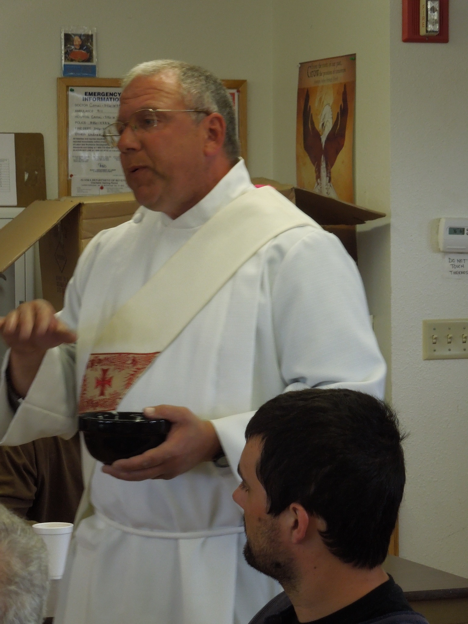 Today I was able to attend an event in Naknek at Dolly’s Hall that was meant for all who participate in the Bristol Bay fishery. This year marked the 14th year that Fred Anderson has organized the “Fishermen’s Send-Off,” Blessing and Potluck for Naknek based fishermen. Many individuals, small businesses and major processors contributed safety gear and miscellaneous items to be raffled amongst the attendees who packed the hall. Food items were graciously shared and donated from community members and business owners as well, to include smoked fish and specially baked items from cannery cookhouses.