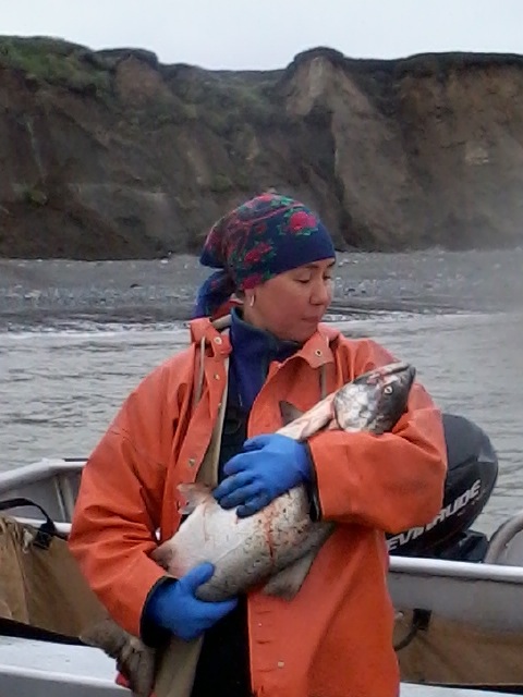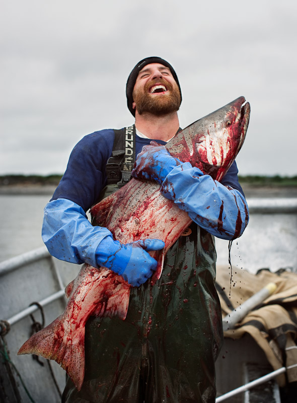 We love our King Salmon in Bristol Bay and it shows. The Kings are the prized by-catch, of the commercial fishermen who pursue red salmon, that show up at most unexpected times when we pull our gear over the gunwales of our skiffs or through the rollers of our powerboats. I love the exultant expression on photographer Corey Arnold’s friend Ben Thomas as he hugs the prize that showed up in his set-net. I have shared the photo in an earlier post, but it is certainly not one that grows tiresome. Thank you Corey for capturing such a great moment.
